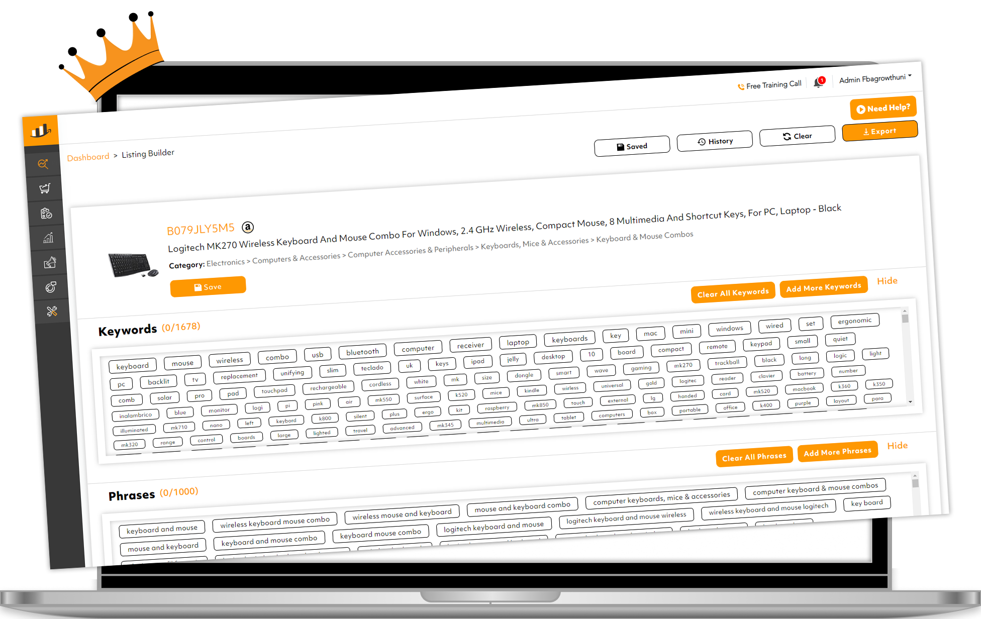 Listing Builder takes listing optimization a step further and makes outranking your competitors easier by extracting the top keywords from your competitor listings and generating a list of must-use keywords for your listings.
